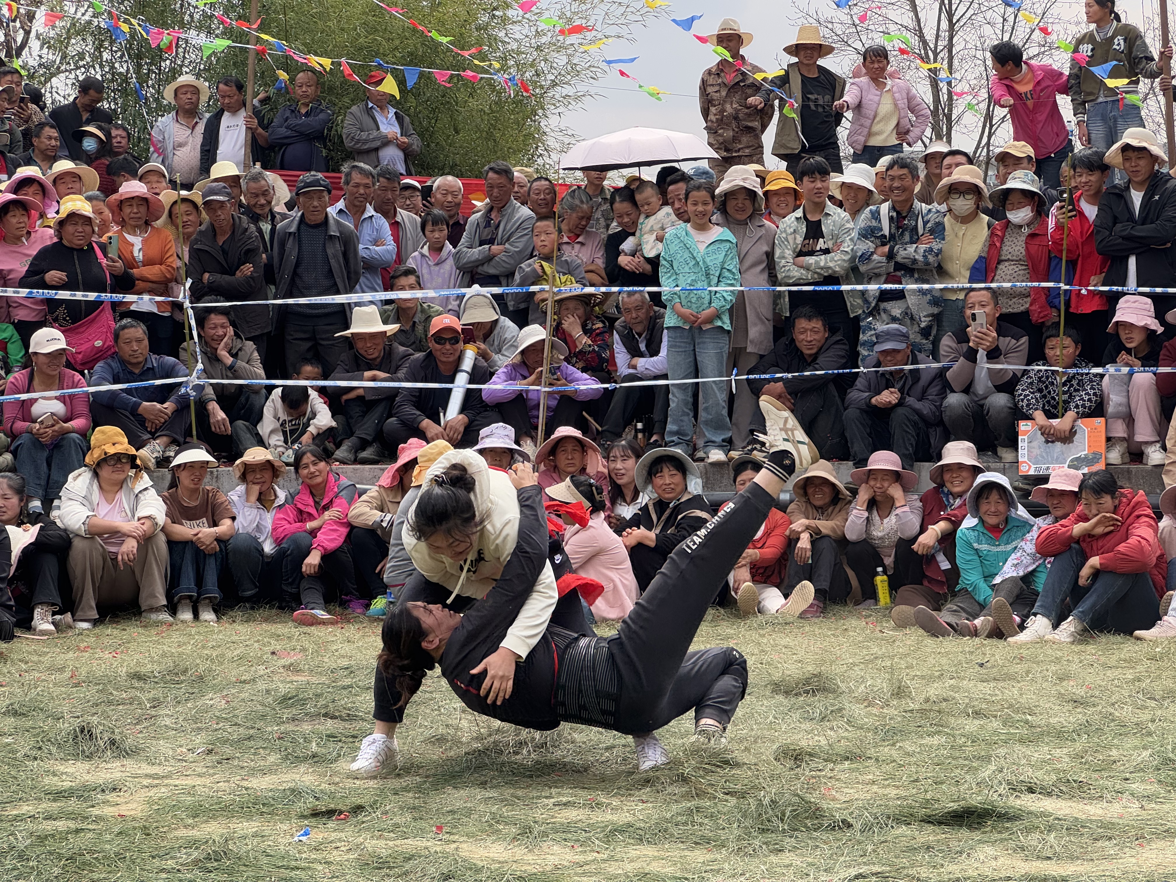 技艺,却尽显独特的力量之美,专业组的比赛让在场的乡亲尽情欣赏到了力量竞技的独特魅力。值得一提的是,女选手们也巾帼不让须眉,在赛场上展现出非凡的勇气与实力。她们以柔克刚,凭借敏捷的身手和顽强的斗志,与男选手们一同为大家带来了一场场精彩绝伦、热血沸腾的视觉盛宴。现场掌声、欢呼声不绝于耳。