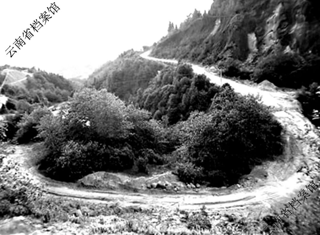 图为漾濞县境内滇缅公路的危险路段(漾濞县档案馆)