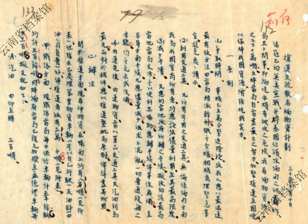 图为抢运及疏散存缅物资计划(1941年12月10日)