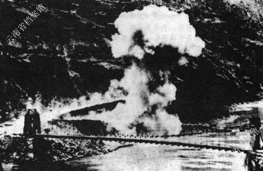 图为1941年,日军飞机轰炸滇缅公路交通咽喉惠通桥。