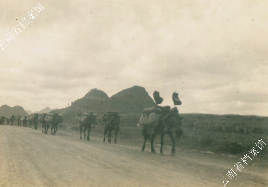 图为马帮驮运也参与到滇缅公路的繁忙的运输中